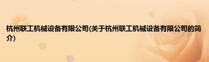 本文关于杭州联工机械设备有限公司的简介就讲解完毕,希望对大家有所帮助。