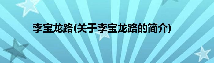 大家好,李宝龙路,关于李宝龙路的简介很多人还不知道,现在让我们一起来看看吧!