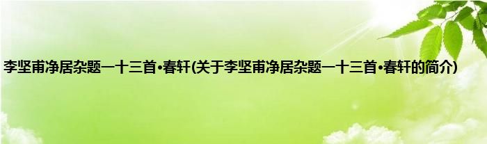 本文关于李坚甫净居杂题一十三首·春轩的简介就讲解完毕,希望对大家有所帮助。
