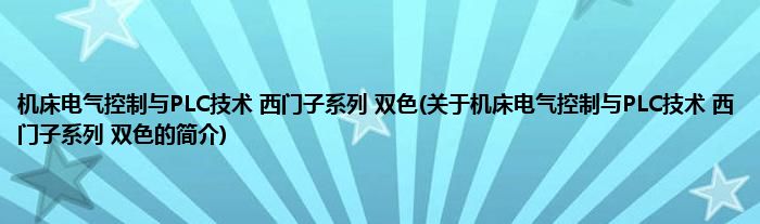 本文关于机床电气控制与PLC技术 西门子系列 双色的简介就讲解完毕,希望对大家有所帮助。