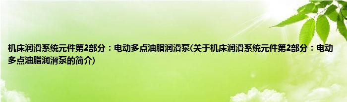 本文关于机床润滑系统元件第2部分:电动多点油脂润滑泵的简介就讲解完毕,希望对大家有所帮助。