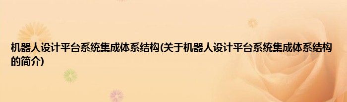 大家好,机器人设计平台系统集成体系结构,关于机器人设计平台系统集成体系结构的简介很多人还不知道,现在让我们一起来看看吧!