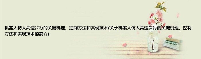大家好,机器人仿人高速步行的关键机理、控制方法和实现技术,关于机器人仿人高速步行的关键机理、控制方法和实现技术的简介很多人还不知道,现在让我们一起来看看吧!