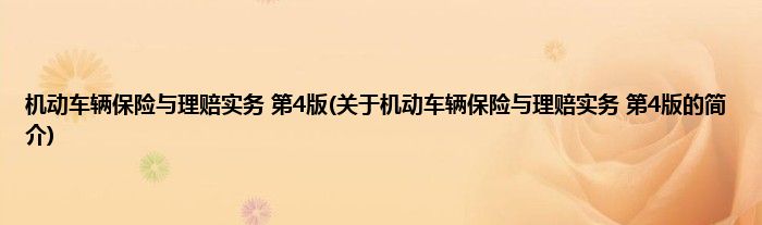 本文关于机动车辆保险与理赔实务 第4版的简介就讲解完毕,希望对大家有所帮助。