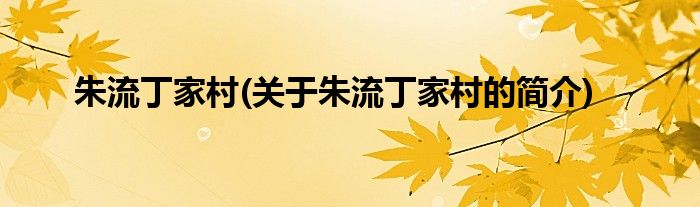本文关于朱流丁家村的简介就讲解完毕,希望对大家有所帮助。