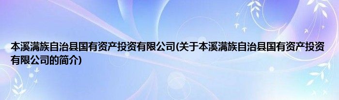 本文关于本溪满族自治县国有资产投资有限公司的简介就讲解完毕,希望对大家有所帮助。