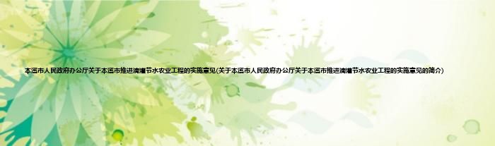 大家好,本溪市人民政府办公厅关于本溪市推进滴灌节水农业工程的实施意见,关于本溪市人民政府办公厅关于本溪市推进滴灌节水农业工程的实施意见的简介很多人还不知道,现在让我们一起来看看吧!
