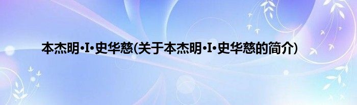 大家好,本杰明·I·史华慈,关于本杰明·I·史华慈的简介很多人还不知道,现在让我们一起来看看吧!