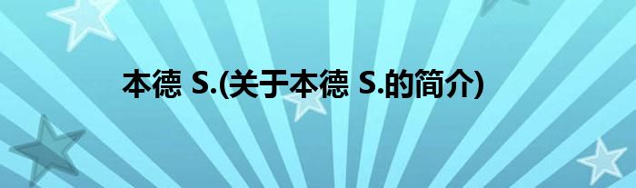 大家好,本德,S.,关于本德,S.的简介很多人还不知道,现在让我们一起来看看吧!