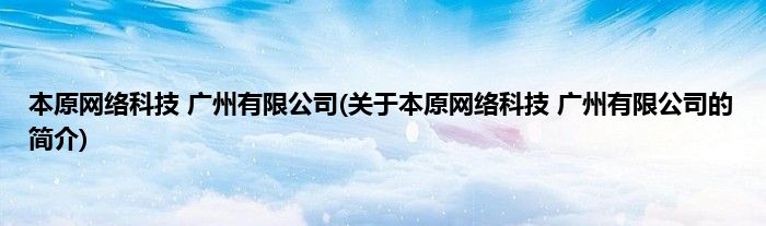 本文关于本原网络科技 广州有限公司的简介就讲解完毕,希望对大家有所帮助。