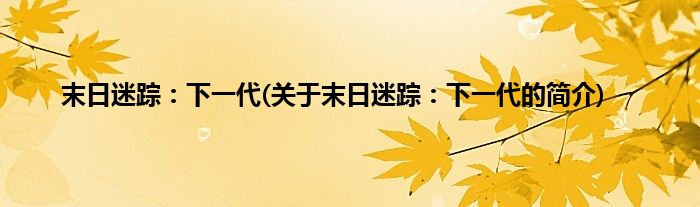 本文关于末日迷踪:下一代的简介就讲解完毕,希望对大家有所帮助。
