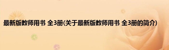 大家好,最新版教师用书 全3册,关于最新版教师用书 全3册的简介很多人还不知道,现在让我们一起来看看吧!