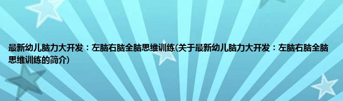 大家好,最新幼儿脑力大开发:左脑右脑全脑思维训练,关于最新幼儿脑力大开发:左脑右脑全脑思维训练的简介很多人还不知道,现在让我们一起来看看吧!