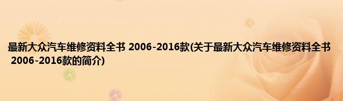 本文关于最新大众汽车维修资料全书 2006-2016款的简介就讲解完毕,希望对大家有所帮助。