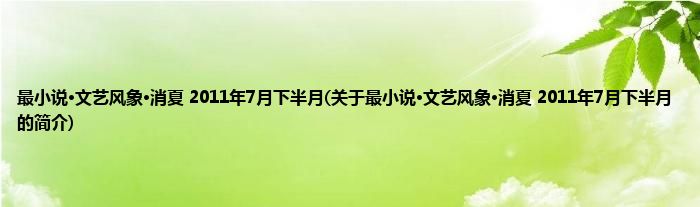 大家好,最小说·文艺风象·消夏 2011年7月下半月,关于最小说·文艺风象·消夏 2011年7月下半月的简介很多人还不知道,现在让我们一起来看看吧!
