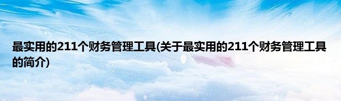 本文关于最实用的211个财务管理工具的简介就讲解完毕,希望对大家有所帮助。