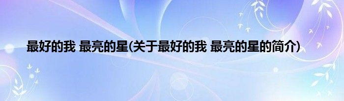 本文关于最好的我,最亮的星的简介就讲解完毕,希望对大家有所帮助。