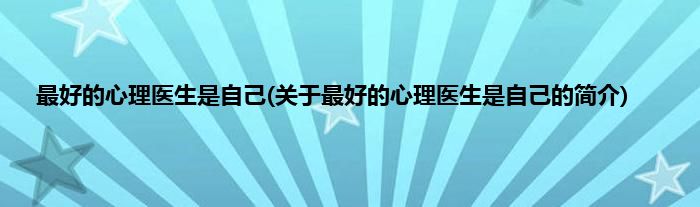大家好,最好的心理医生是自己,关于最好的心理医生是自己的简介很多人还不知道,现在让我们一起来看看吧!