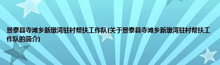 本文关于景泰县寺滩乡新墩湾驻村帮扶工作队的简介就讲解完毕,希望对大家有所帮助。
