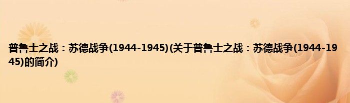本文关于普鲁士之战:苏德战争(1944-1945)的简介就讲解完毕,希望对大家有所帮助。