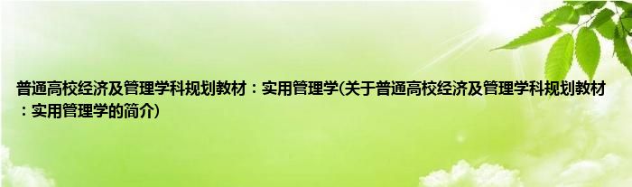 1、 《普通高校经济及管理学科规划教材:实用管理学》是“普通高校经济及管理学科规划教材”之一,该书是作者根据郑州轻工业学院教学大纲的要求,并结合自己多年从事管理人员培训的实践所编写的。