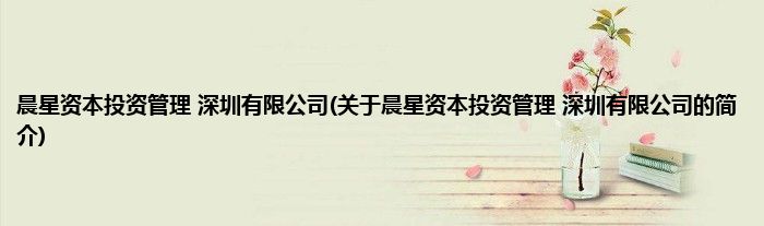 本文关于晨星资本投资管理 深圳有限公司的简介就讲解完毕,希望对大家有所帮助。
