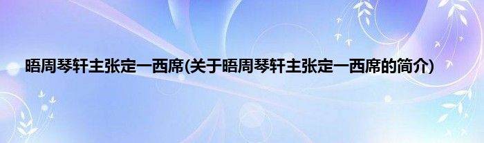 大家好,晤周琴轩主张定一西席,关于晤周琴轩主张定一西席的简介很多人还不知道,现在让我们一起来看看吧!