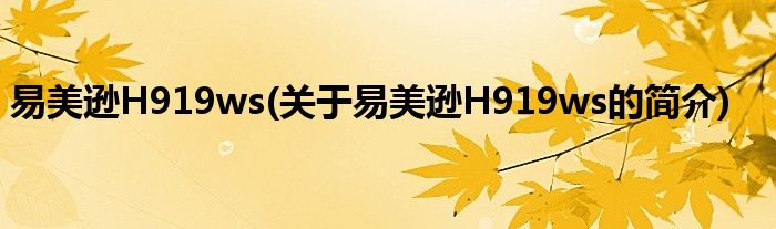 本文关于易美逊H919ws的简介就讲解完毕,希望对大家有所帮助。