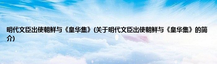 大家好,明代文臣出使朝鲜与《皇华集》,关于明代文臣出使朝鲜与《皇华集》的简介很多人还不知道,现在让我们一起来看看吧!