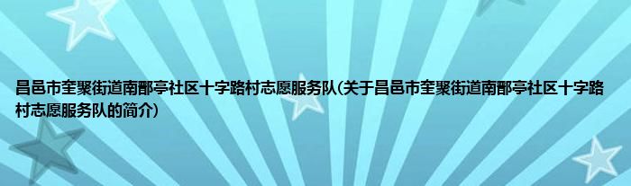 本文关于昌邑市奎聚街道南鄑亭社区十字路村志愿服务队的简介就讲解完毕,希望对大家有所帮助。