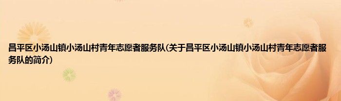 本文关于昌平区小汤山镇小汤山村青年志愿者服务队的简介就讲解完毕,希望对大家有所帮助。