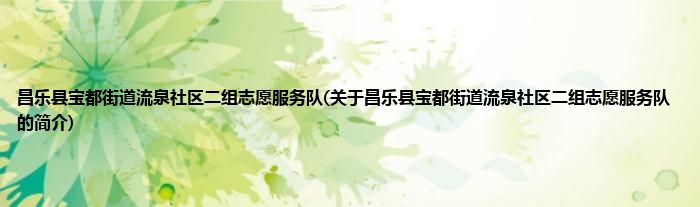 本文关于昌乐县宝都街道流泉社区二组志愿服务队的简介就讲解完毕,希望对大家有所帮助。