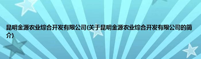 本文关于昆明金源农业综合开发有限公司的简介就讲解完毕,希望对大家有所帮助。