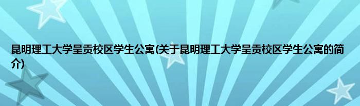 本文关于昆明理工大学呈贡校区学生公寓的简介就讲解完毕,希望对大家有所帮助。