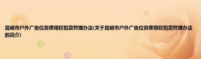 本文关于昆明市户外广告位置使用权拍卖管理办法的简介就讲解完毕,希望对大家有所帮助。