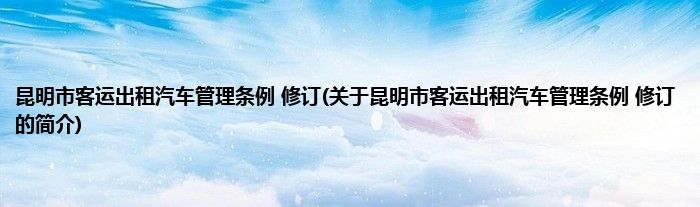 大家好,昆明市客运出租汽车管理条例 修订,关于昆明市客运出租汽车管理条例 修订的简介很多人还不知道,现在让我们一起来看看吧!