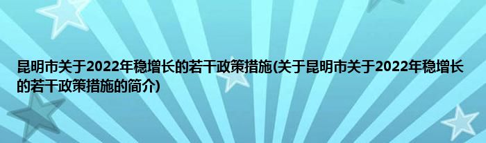 本文关于昆明市关于2022年稳增长的若干政策措施的简介就讲解完毕,希望对大家有所帮助。