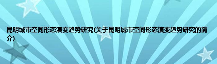 大家好,昆明城市空间形态演变趋势研究,关于昆明城市空间形态演变趋势研究的简介很多人还不知道,现在让我们一起来看看吧!