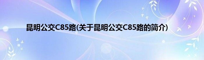 本文关于昆明公交C85路的简介就讲解完毕,希望对大家有所帮助。