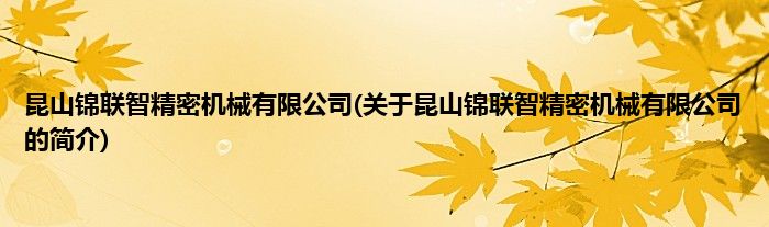 本文关于昆山锦联智精密机械有限公司的简介就讲解完毕,希望对大家有所帮助。