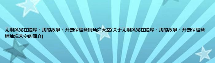 无限风光在险峰:我的故事:开创保险营销灿烂天空(关于无限风光在险峰:我的故事:开创保险营销灿烂天空的简介)