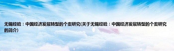 本文关于无锡经验:中国经济发展转型的个案研究的简介就讲解完毕,希望对大家有所帮助。