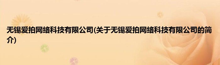 本文关于无锡爱拍网络科技有限公司的简介就讲解完毕,希望对大家有所帮助。