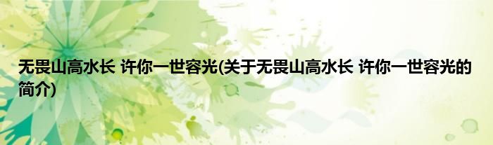 本文关于无畏山高水长,许你一世容光的简介就讲解完毕,希望对大家有所帮助。