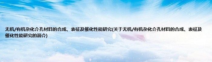 大家好,无机/有机杂化介孔材料的合成、表征及催化性能研究,关于无机/有机杂化介孔材料的合成、表征及催化性能研究的简介很多人还不知道,现在让我们一起来看看吧!