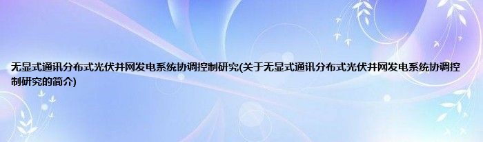 本文关于无显式通讯分布式光伏并网发电系统协调控制研究的简介就讲解完毕,希望对大家有所帮助。