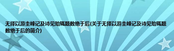 本文关于无择以游圭峰记及诗见贻辄题数绝于后的简介就讲解完毕,希望对大家有所帮助。