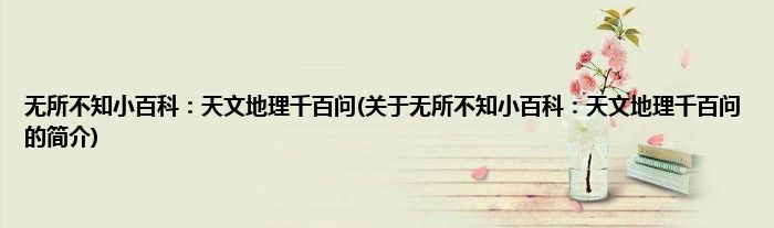 本文关于无所不知小百科:天文地理千百问的简介就讲解完毕,希望对大家有所帮助。