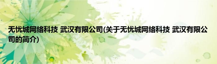 1、 无忧城网络科技(武汉)有限公司(简称:无忧网络)是一家成立于武汉市的互联网科技公司。
