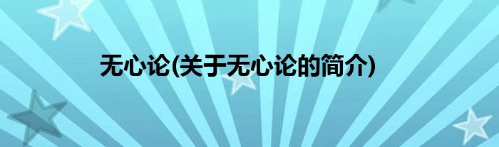 本文关于无心论的简介就讲解完毕,希望对大家有所帮助。